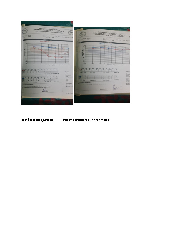Very Significant Improvement for SNHL Hearing Loss was observed in TEN Hyperbaric Oxygen Therapy at Fortis Escort Hospital Jaipur recently . HBOT is approved for sixteen indications by FDA USA including Chronic wounds , Dry & Wet Gangrene , CP , Autism and many other chronic health issues including preventive health care . National Hyperbaric Research Centre at Vidyadhar Nagar Jaipur has been treating over Six years successfully various ailment including post cancer issues